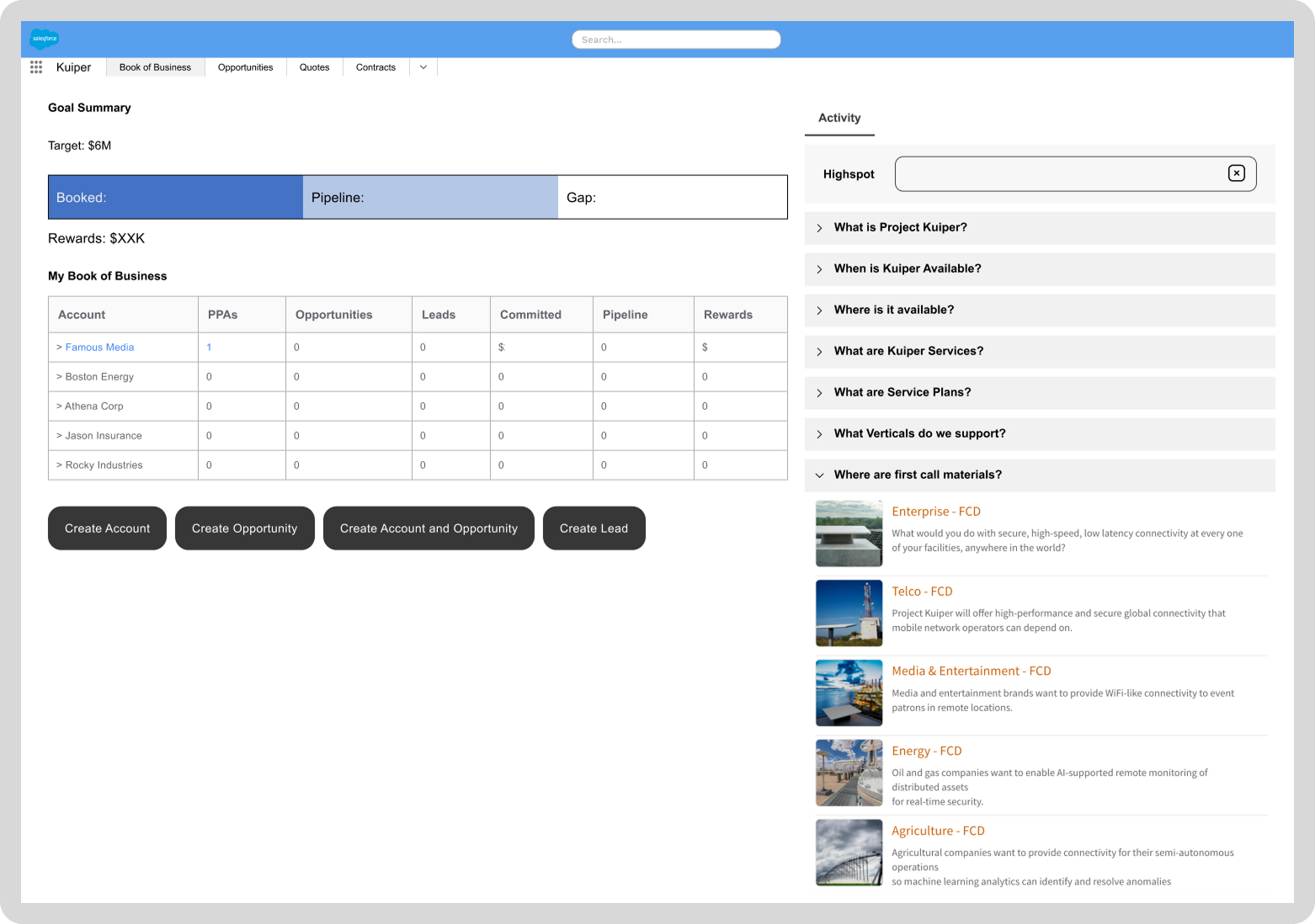 A goals and rewards dashboard gave sellers a visual of progress toward key metrics, reinforcing motivation and alignment with business targets.